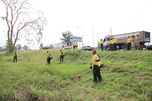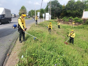 ๕.๒ ปฎิบัติกิจกรรมจิตอาสาพัฒนา (บำเพ็ญสาธารณะประโยชน์) ได้ร่วมกันตัดหญ้า ปรับปรุงภูมิทัศน์ เพื่อเพิ่มทัศนวิสัยในการขับขี่ให้กับผู้ใช้รถใช้ถนน ในช่วงเทศกาลสงกรานต์