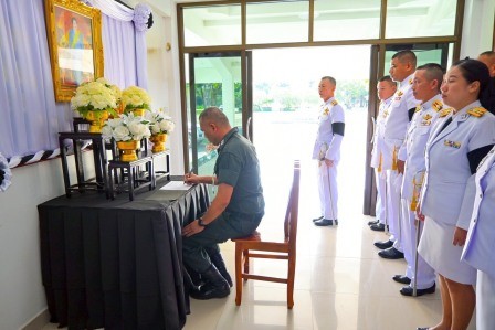 เมื่อ 31 ต.ค. 68 เวลา 16.00 น. พ.ต.อ.สุกิจ ก้องจตุศักดิ์ ผกก.2 บก.กฝ. บช.ตชด. และข้าราชการตำรวจในสังกัด ร่วมพิธีกล่าวเทิดเกียรติ น้อมเกล้าฯรำลึกในพระมหากรุณาธิคุณ เสด็จสู่สวรรคาลัย และลงนามถวายความอาลัย แด่สมเด็จพระนางเจ้าสิริกิติ์ พระบรมราชินีนาถ พระบรมราชนนีพันปีหลวง ณ กก.2บก.กฝ.บช.ตชด.